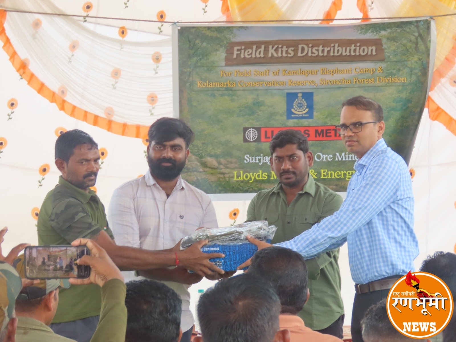 कमलापूर:- कमलापूर हत्ती छावणी, सिरोंचा वन विभाग यांना दिनांक १७ मार्च २०२६ रोजी लॉइड्स मेटल्स अँड एनर्जी लिमिटेड यांनी गडचिरोली जिल्ह्यातील वन्यजीव संरक्षणासाठी कार्यरत अग्रिम पथकांना सहाय्य करण्याच्या आपल्या बांधिलकीचा पुनरुच्चार करत सिरोंचा वन विभागातील कमलापूर हत्ती छावणीत फील्ड किट्स वितरण कार्यक्रम यशस्वीरित्या आयोजित केला.